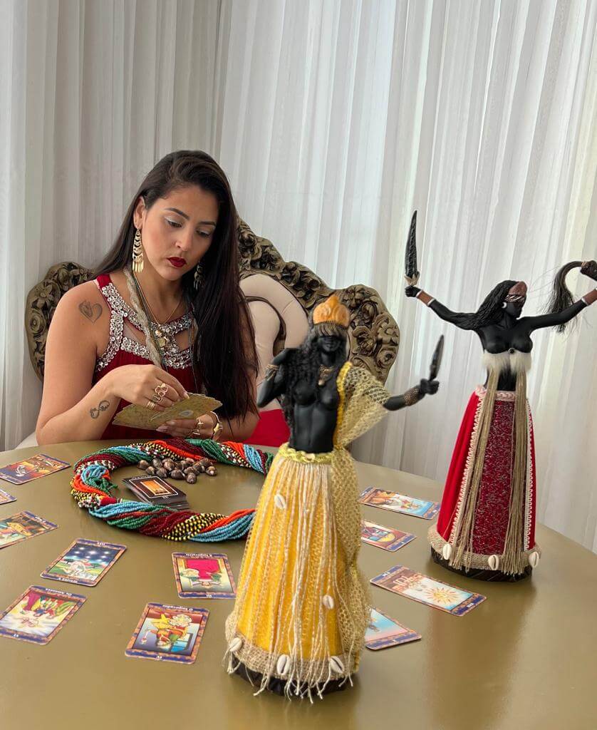 Olá, seja bem-vindo(a)! Eu sou Marina, Mentora espiritual, Mãe de Santo, taróloga, psicanalista, que nunca se contentou apenas com o Don predestinado por Deus. Sempre tive uma inquietude muito grande que me fez ir em busca de mais, mais conhecimento, mais especializações, sempre muito dedicada com o único intuito de fazer com que meus clientes, filhos de fé encontrem de fato a solução para aquilo que estão em busca.